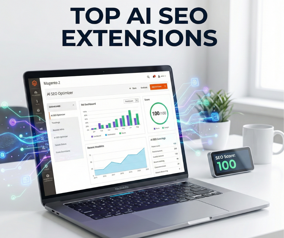 This article covers the top Magento 2 AI extensions for better SEO designed to automate and improve SEO performance. Whether you are a merchant looking to reduce manual workload, an SEO specialist aiming for more granular control, or an eCommerce manager tasked with scaling organic revenue, this guide will help you identify the right AI-driven solutions for your tech stack.